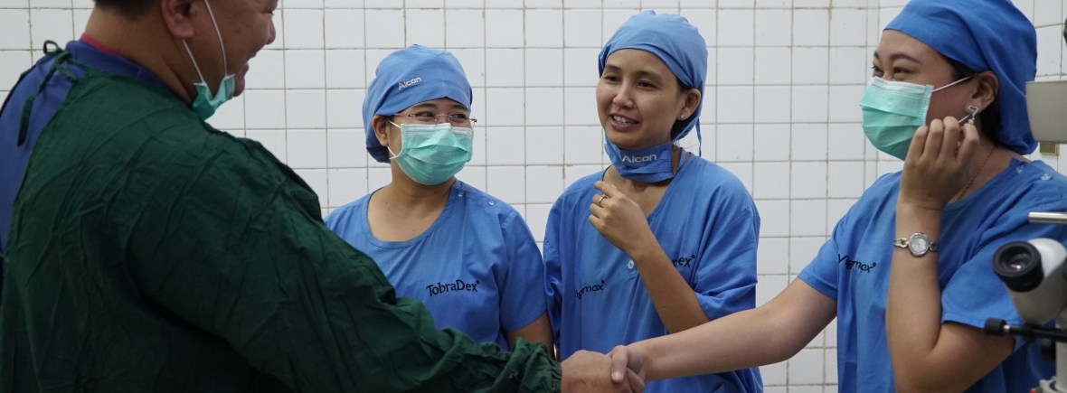 Dr. Chu observes Burmese surgeons at Yangon Eye Hospital.